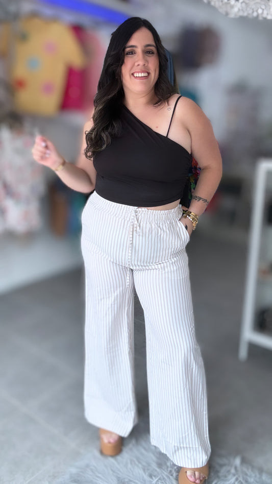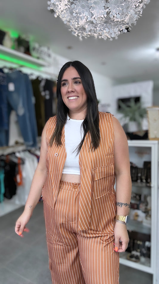 AgotadoKhaki strip elegant pant