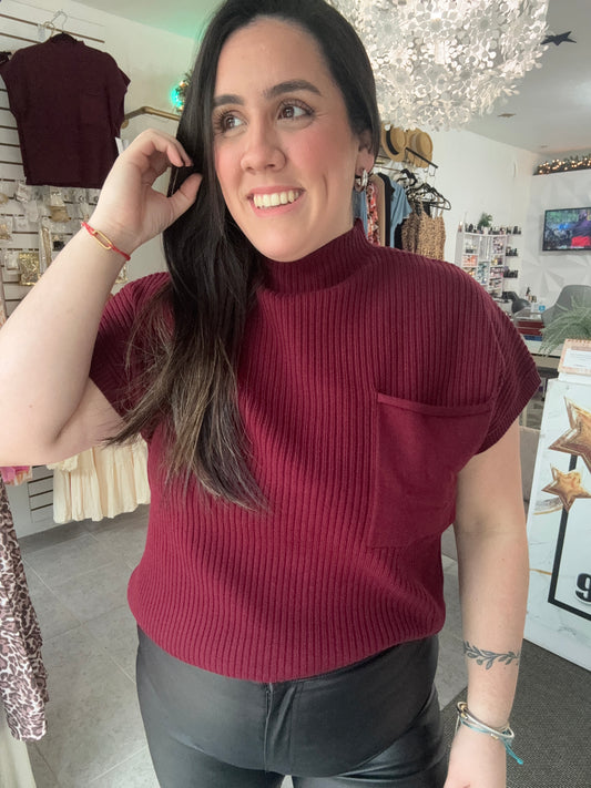 AgotadoRed Wine Short Sleeve suéter