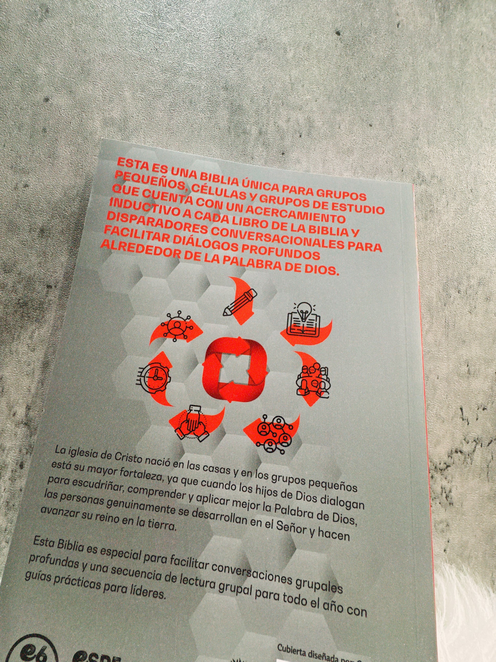 Biblia para grupos pequeños, células y grupos de estudio que cuenta con un acercamiento inductivo a cada libro de la biblia y disparadores conversacionales para facilitar dialogo profundo alrededor de la Palabra de Dios.