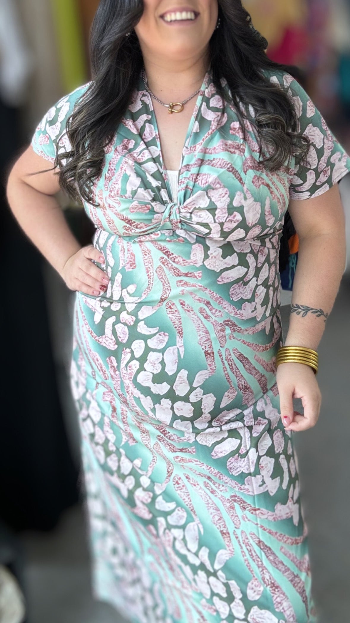 Green print Midi Dress